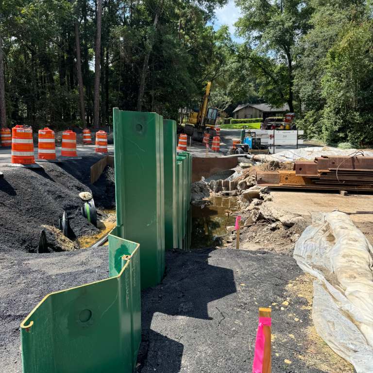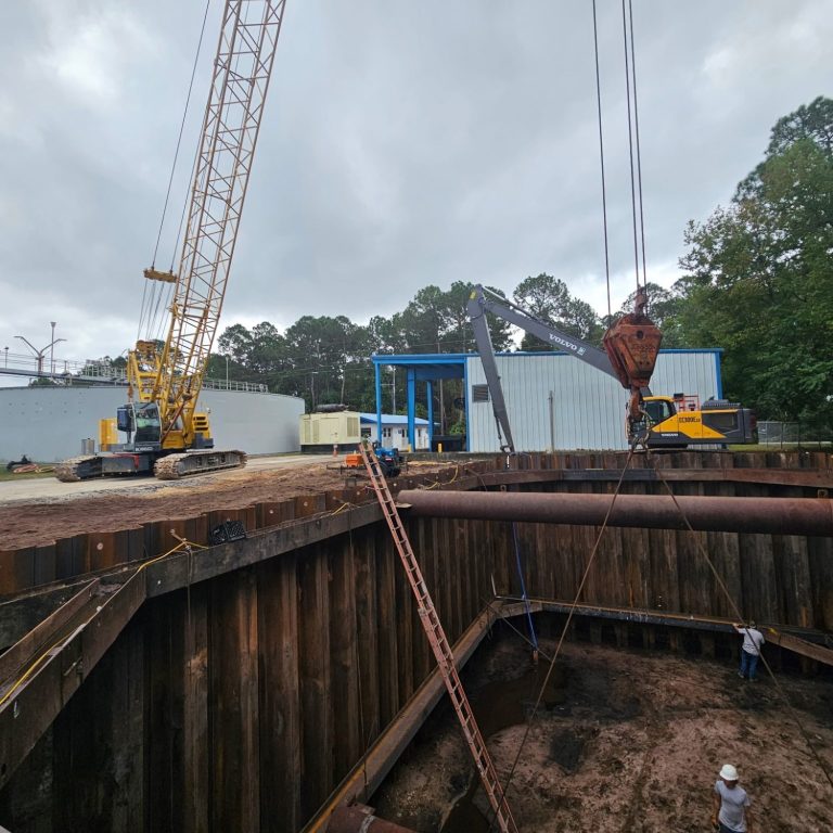 At Davis Marine we specialize in the installation of temporary steel sheet piling structures like cofferdams for a variety of project needs. Whether it’s a utility job for a lift station or building a new boat ramp, we’re here to help with all your earth retention and dewatering needs. With years of hands-on experience, we know how to get the job done right and keep your site safe and dry.